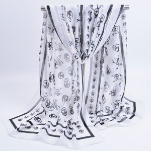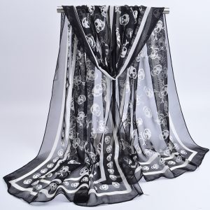 New Autumn Halloween Skull Chiffon Small Scarf, European and American Foreign Trade Thin Long Scarf Decoration Gift Scarf.