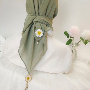 New Solid Color Chiffon Hijab Headscarf with Ins-style Daisy Dried Flowers for Hui Ethnic Minority, Live-streaming Ready