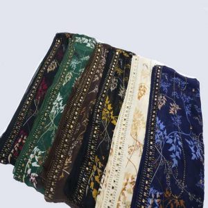 Pearl Chiffon Floral Embellished Scarf, a perfect fusion of elegance and style.